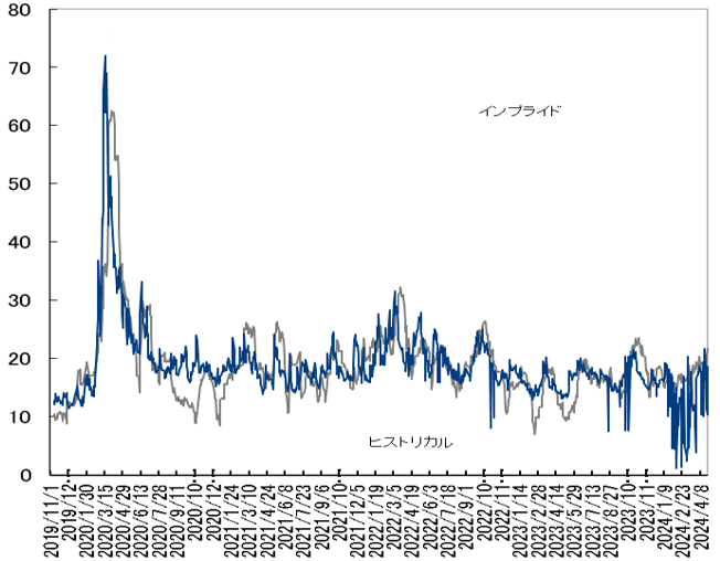 中東情勢への過度な警戒感が後退し一時20pt下回る