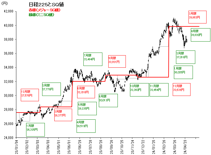 週半ばの4月24日は、前日に米テスラが決算発表を材料に時間外取引で急伸したことを受け、現物市場ではハイテク株を中心に買い戻しが強まり、日経225先物も一時38,470円まで上昇した。