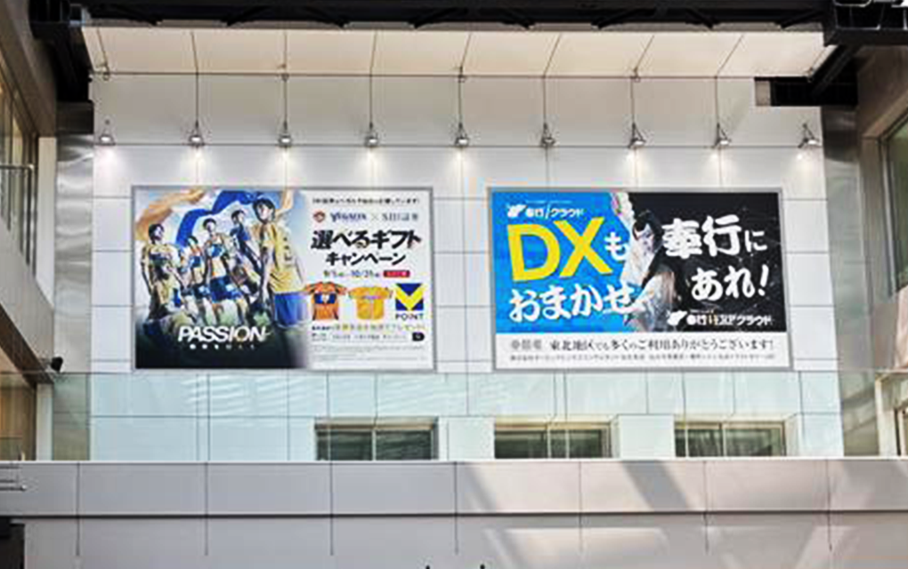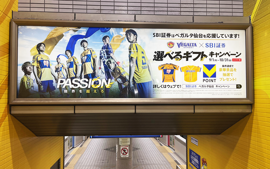 ベガルタ仙台とのコラボレーションキャンペーンを告知する広告の掲載(JR仙台駅、地下鉄南北線 泉中央駅)
