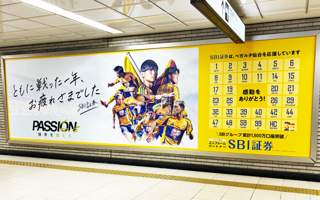 ベガルタ仙台へのメッセージ広告の掲載(地下鉄 仙台駅)
