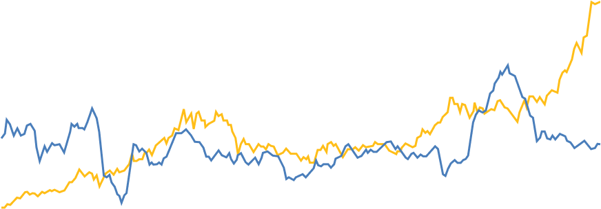 為替ヘッジありは為替変動の影響を抑え、基本的には金の価格変動によって値動きするファンドです。